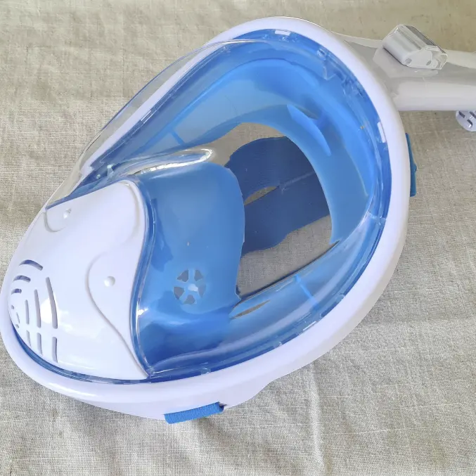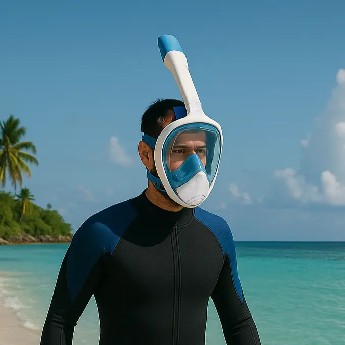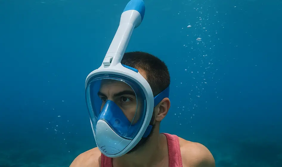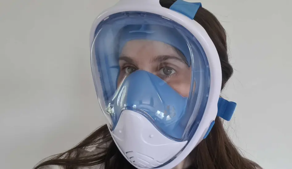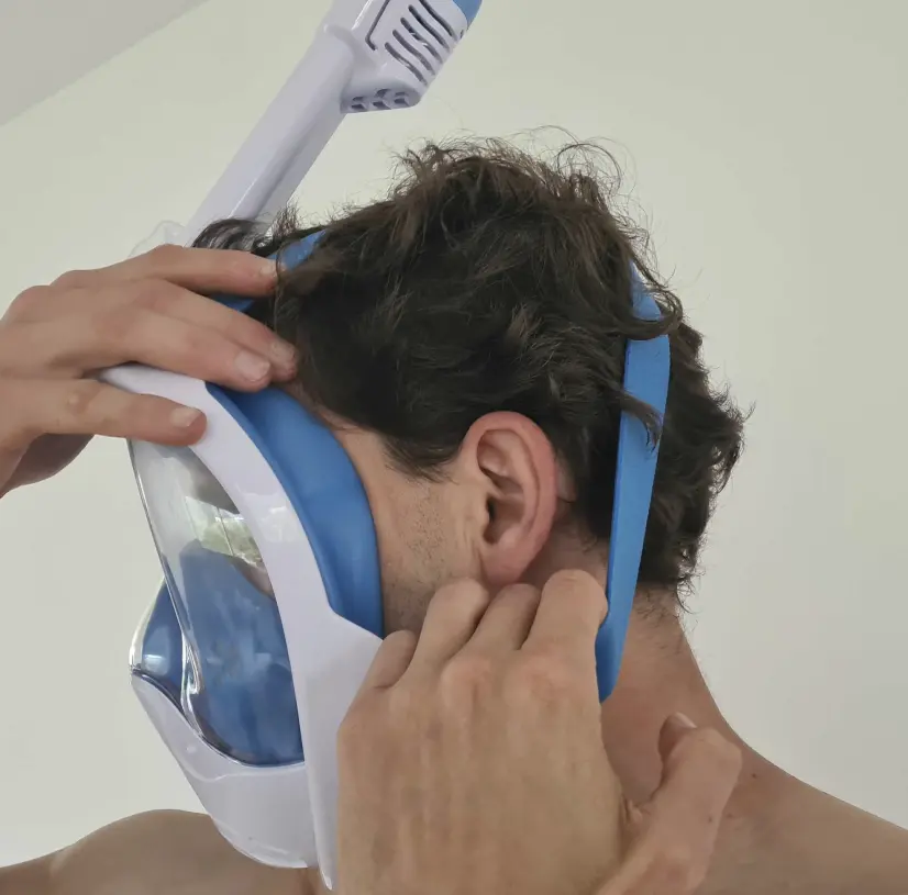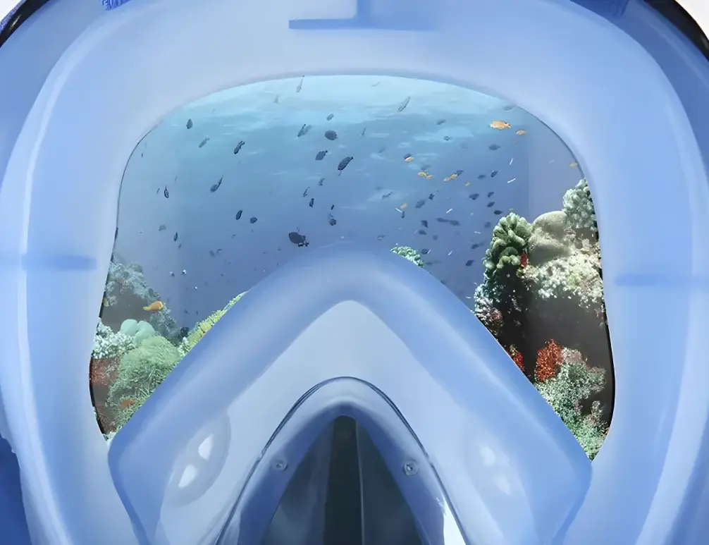 Qinux OceanLook is a full-face snorkel mask designed for you to breathe naturally underwater, using both your nose and mouth, without the need to bite down on a traditional tube.